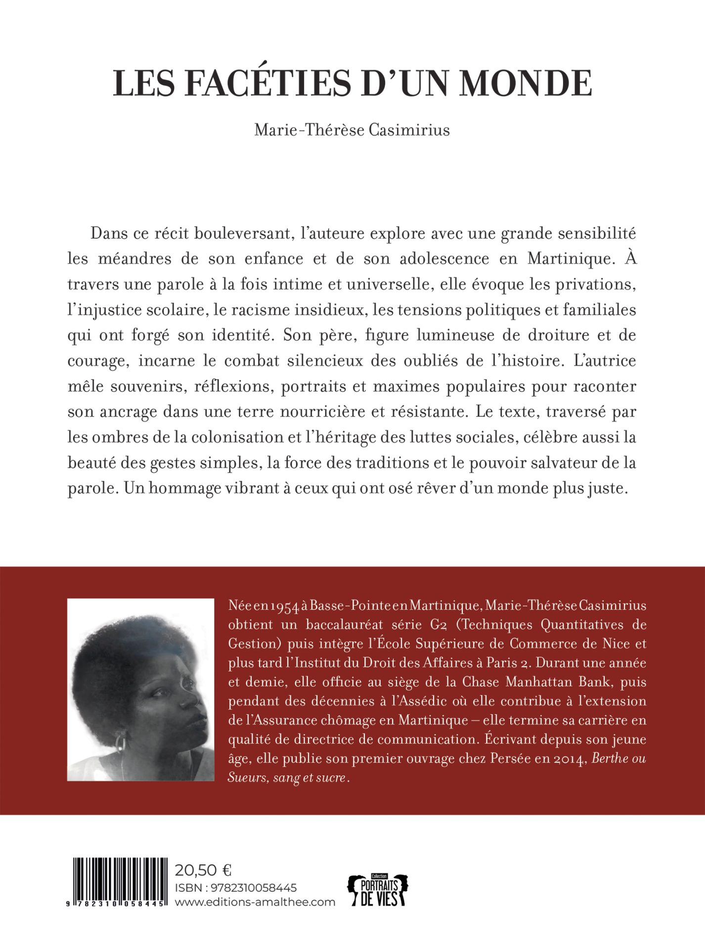 Dans ce récit bouleversant, l’auteure explore avec une grande sensibilité les méandres de son enfance et de son adolescence en Martinique. À travers une parole à la fois intime et universelle, elle évoque les privations, l’injustice scolaire, le racisme insidieux, les tensions politiques et familiales qui ont forgé son identité. Son père, figure lumineuse de droiture et de courage, incarne le combat silencieux des oubliés de l’histoire. L’autrice mêle souvenirs, réflexions, portraits et maximes populaires pour raconter son ancrage dans une terre nourricière et résistante. Le texte, traversé par les ombres de la colonisation et l’héritage des luttes sociales, célèbre aussi la beauté des gestes simples, la force des traditions et le pouvoir salvateur de la parole. Un hommage vibrant à ceux qui ont osé rêver d’un monde plus juste.